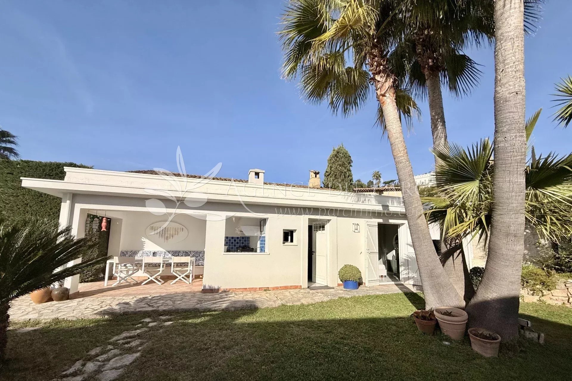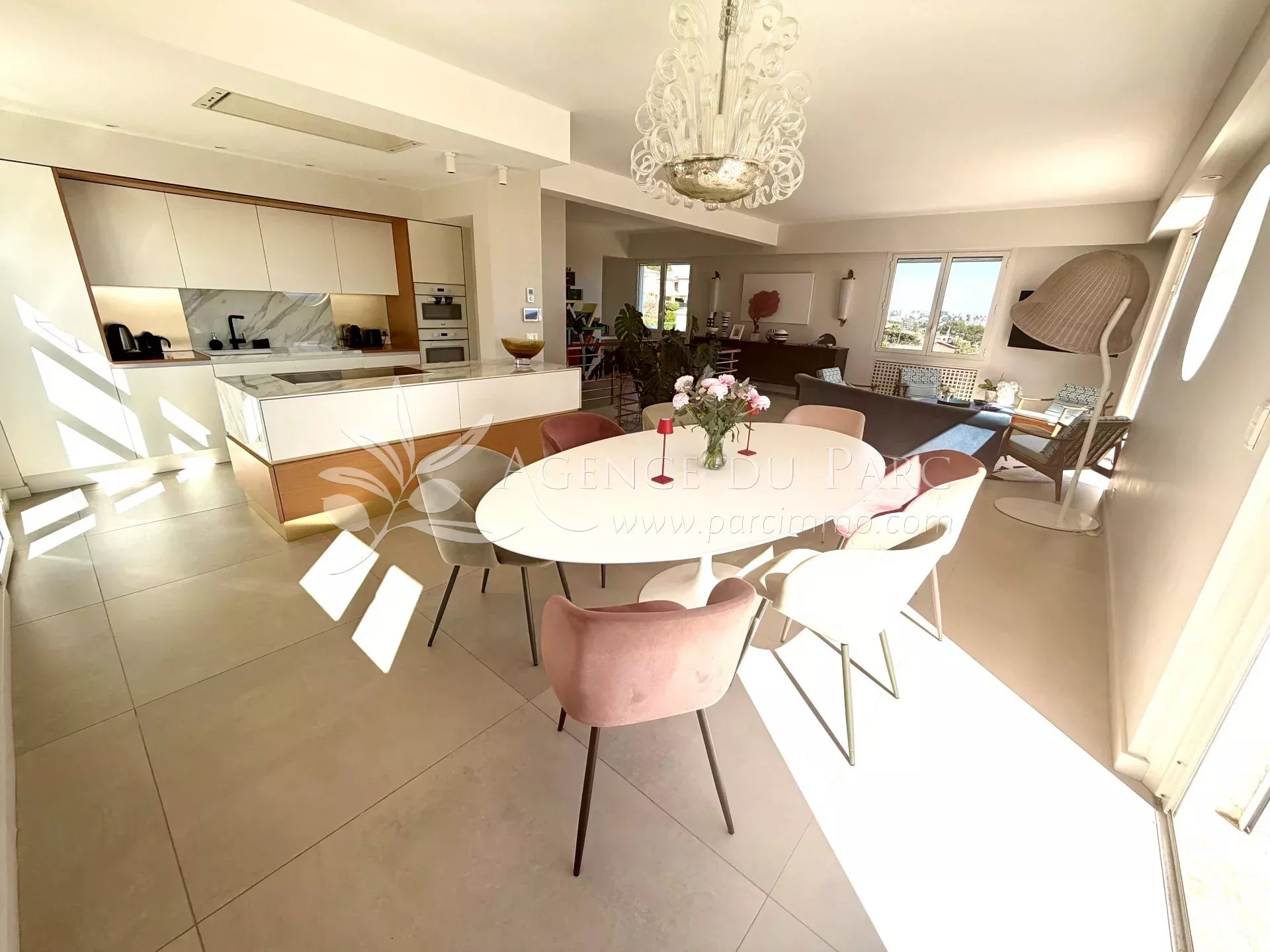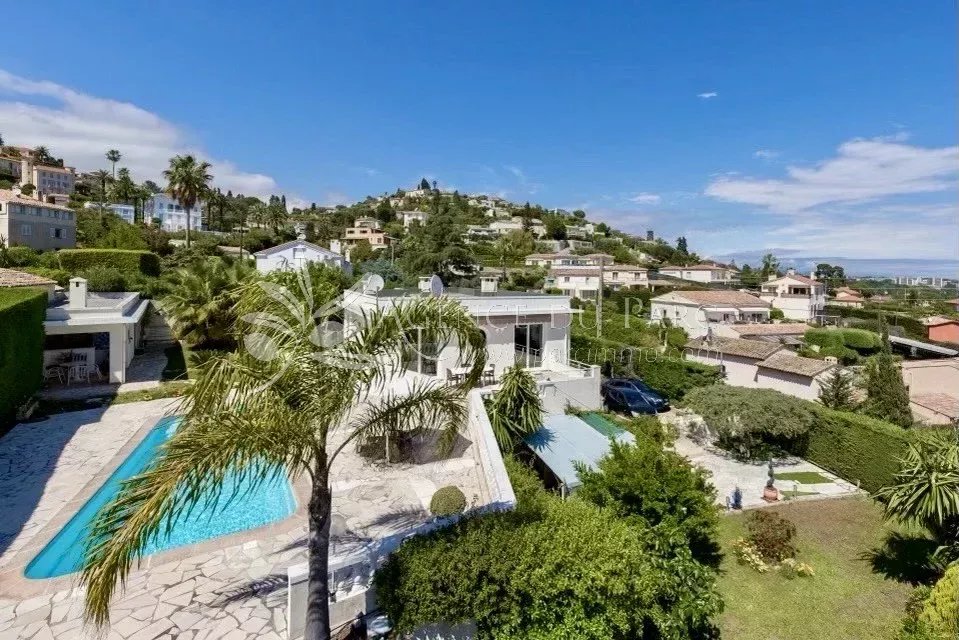 Située sur les collines de Golfe-Juan, dans un environnement calme et privilégié, cette magnifique villa d'une surface total de 230 m² offre un cadre de vie exceptionnel avec une vue mer époustouflante sur le Cap d’Antibes et les îles de Lérins.